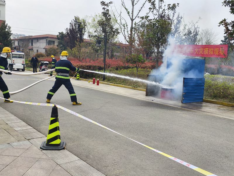 在應(yīng)急救援演練環(huán)節(jié),模擬了樓宇內(nèi)強(qiáng)電井起火人員被困的場(chǎng)景和車棚電動(dòng)車自燃著火的場(chǎng)景。物業(yè)團(tuán)隊(duì)迅速啟動(dòng)應(yīng)急預(yù)案,組織人員疏散、急救,使用消防器材進(jìn)行滅火,并與消防部門緊密配合,成功將火勢(shì)控制并撲滅。演練過程中,大家嚴(yán)格按照應(yīng)急預(yù)案進(jìn)行操作,展現(xiàn)出了良好的應(yīng)急反應(yīng)能力和團(tuán)隊(duì)協(xié)作精神。