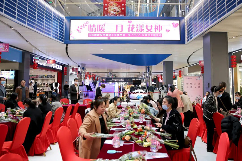 為慶祝“三八”國際婦女節的到來,豐富集團女職工文化生活,3月4日下午,集團工會組織全體女職工在滕投·人和廣場開展“情暖三月 花漾女神”主題花藝插花活動。集團副書記張明、工會主席王洪全及相關部室人員參加活動?;顒蝇F場,花藝老師介紹了每一種鮮花的名字及花語,講解了花的種類和插花中要注意的色彩搭配、主次關系和